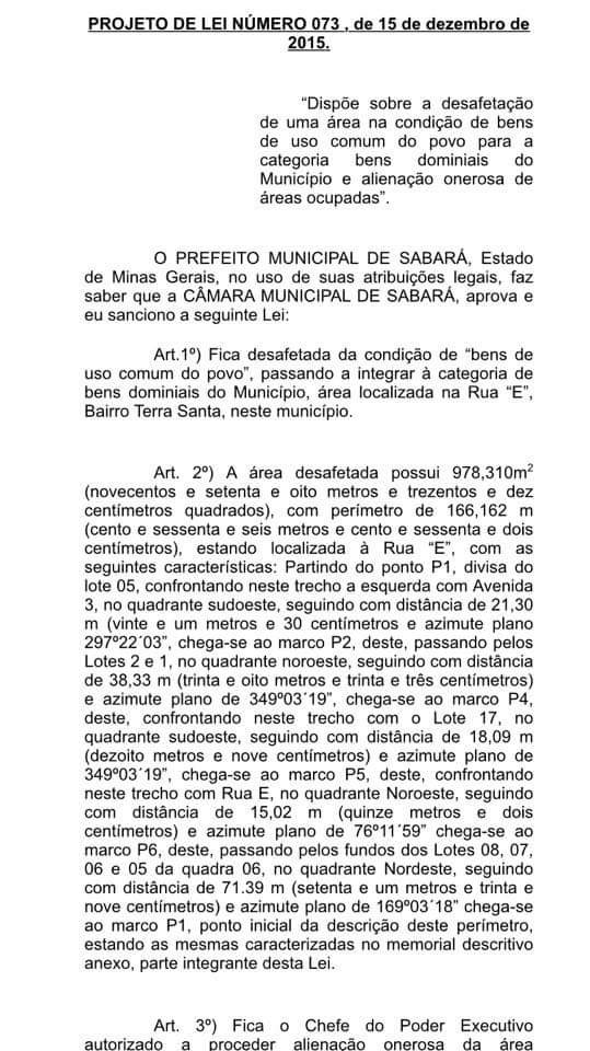 A área, conforme pode ser vista no mapa em vermelho, foi aprovada como loteamento denominado bairro Terra Santa, em 14/10/1965. Há um tempo atrás, uma parte dele foi invadido. A Prefeitura, entendendo que invasões causam problemas ao município, notificou o invasor, que solicitou a compra do terreno.