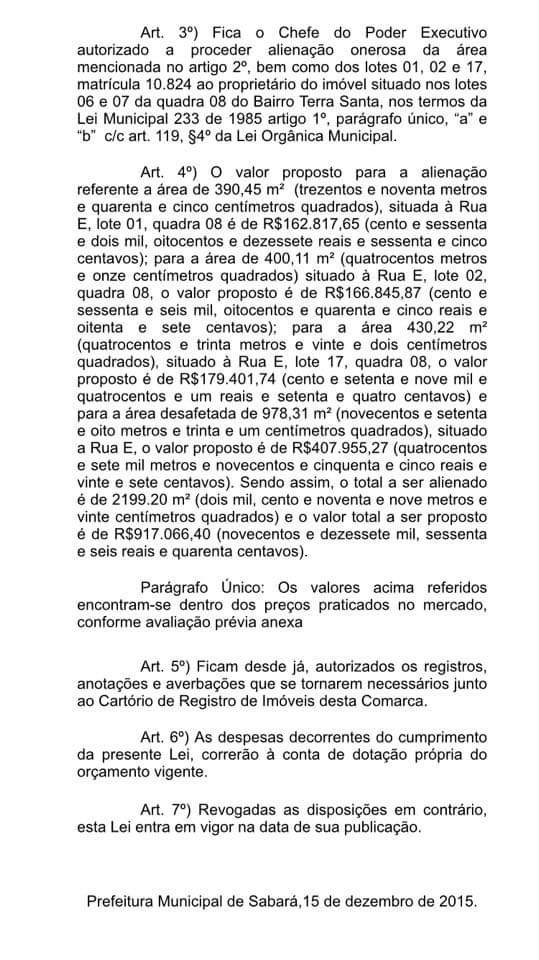 Cabe aos vereadores a deliberação sobre o assunto. Caso a autorização legislativa não seja aprovada, o proprietário já está ciente de que deverá desocupar a área.